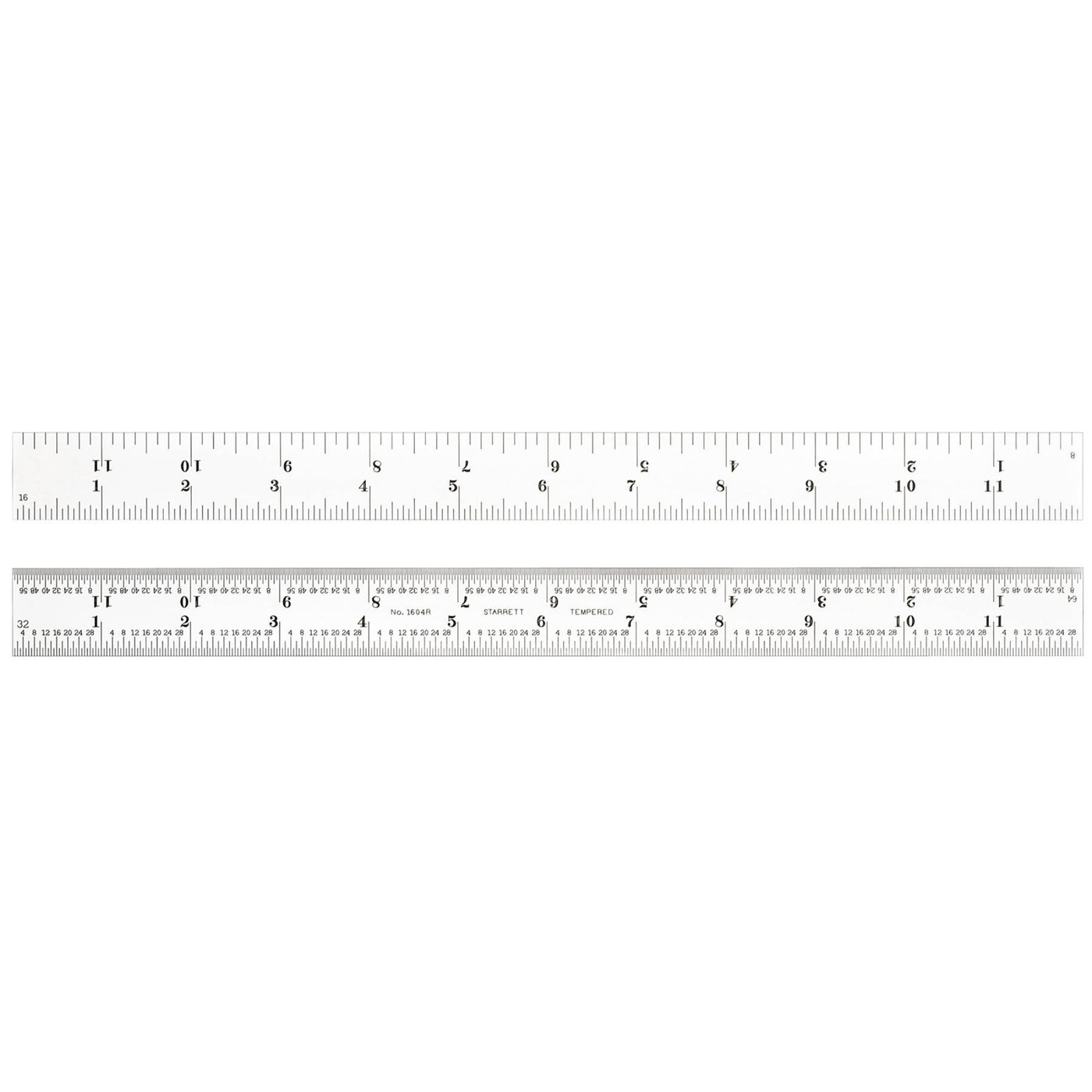 1604R-12 Spring Tempered Steel Rule With Inch Graduations, 4R Style Graduations, 12 Length, 1 Width, 3/64 Thickness
