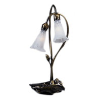 14654 16'H White Pond Lily 2 Lt Accent Lamp Manufacturer By Meyda. One Of The Most Popular Louis Comfort Tiffany Styled Lamps On The Market Today; Recreating His Famous Favrile Design From The Early 1900'S. This Mottled Winter White Shaded Two Light Accent Lamp Offers An Attractive; Delicate Design Featuring Shades Mouth Blown Of Fine Art Glass. Lily Shades Are Suspended From Stems Delicately Winding Above Lily Pads Bases Finished By Hand In Mahogany Bronze. Lens Color : White, Made In China