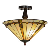 138901 16'W Belvidere Semi-Flushmount Manufacturer By Meyda. Exquisite Purple; Dark Green And Sunburst Colored Trim With Amber Jewels Adorn Beige Iridescent Glass On This Conical Shade. This Stunning Shade Is Constructed With Meyda Tiffany'S Famous Copperfoil Construction Process. The Hardware Is Finished In A Warm Mahogany Bronze. Lens Color : Sunflower;Amber Glass (Not Mica);Chocolate;Ivory, Made In China