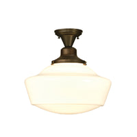 30268 16'W Revival Schoolhouse W/Traditional Globe Semi-Flushmount Manufacturer By Meyda. Schoolhouse Glass Is A Term Used For Ceiling Mounted Opal Glass Fixtures That Are Commonly Used In Schools And Other Public Buildings. With The Invention Of The Electric Lamp; These Bright Opal Glass Shades Used As Pendants And Ceiling Fixtures; Are Economical; Decorative And Always In Style. This Schoolhouse Shade Is Paired With Semi Flush Hardware; Hand Finished In Craftsman Brown Lens Color : White, Made In Usa