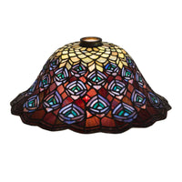 14475 16'W Tiffany Peacock Feather Shade Manufacturer By Meyda. As Distinctive As A Beautiful Peacock'S Feathers; No Two Shades Will Ever Be The Same As Their Individuality Can Be As Remarkably Unique As Their Personality. This Artistic Creation Utilizes Swirling Opalescent Art Glass Background Combinations Including Beige Amber; Yellow Pinks; Red Purples; Golden Blues And Greens; Ivories; Bluish Whites; Turquoise Blues; Periwinkle; Olive And Spring Greens; Pale Yellow; Amethyst; Emerald And Topaz. The Eye Of The Plumage Design Reveals Purples; Pastel Blues; Teals; Cobalt And Ivories. Individual Pieces Of Glass Are Hand Cut And Wrapped Using Meyda Tiffany'S Famous Copperfoil Construction. Each Shade Is A Unique Work Of Art With Color Variations Based On Natural Ingredients Inherent In The Glass. Lens Color : Green;Blue;Violet, Made In China