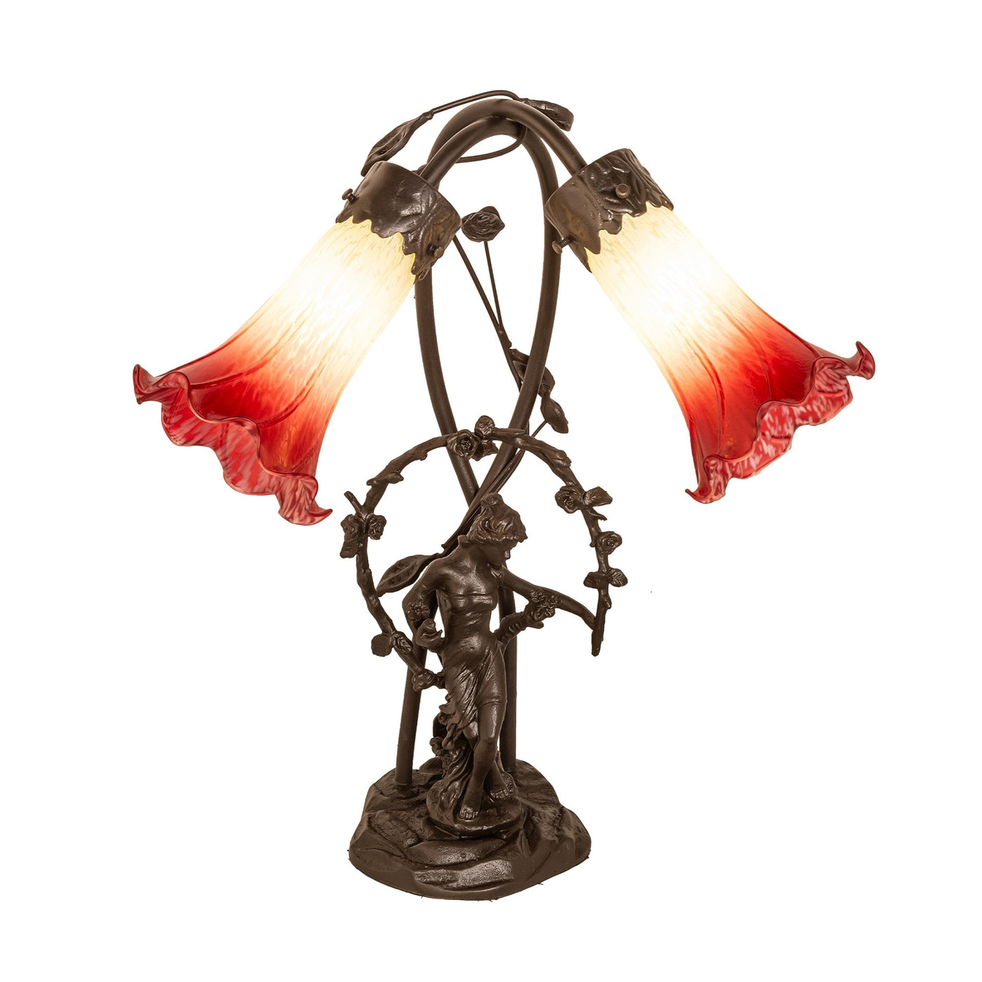 17' High Seafoam/Cranberry Tiffany Pond Lily 2 Light Trellis Girl Accent Lamp
