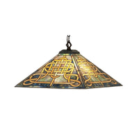 19032 17'Sq Knotwork Mission Pendant Manufacturer By Meyda. Like A Fire Opal; The Multi Hued Glass Used To Create The Knotwork Mission Pendant Vibrates With Swirled Jewel Tones Of Jade; Amber And Touches Of Ruby And Cobalt That Are Unique In Every Panel; And In Every Light Source. The Elegant Interlocking Knot Of Amber Gold Is The Highlight Of This Fixture. The Hardware Is Hand Finished In Mahogany Bronze. Lens Color : Sunflower;Amber Glass (Not Mica);Violet;Chocolate;Beige, Made In China
