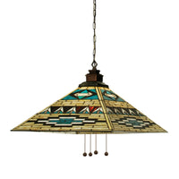 19030 17'Sq Valencia Mission Pendant Manufacturer By Meyda. Patterns And Colors Of Native American Blankets And Pottery Have Given Inspiration To This Meyda Tiffany Designed Mission Style Stained Glass Shade. The Intricately Patterned Shade Of Bark Brown Granite Glass With Sand Beige And Turquoise Is Combined With Clean Lined Mission Style Inverted Pendant Hardware That Has An Earth Toned Mahogany Bronze Hand Applied Finish. Comes With 4 Light Pullcahin Cluster; Mission-Styled Chain & Square Canopy. Lens Color : Green;Blue;Chocolate;Beige;Teal, Made In China