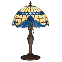 31201 18.5'H Baroque Accent Lamp Manufacturer By Meyda. Regal Scrolls Of Royal Blue With Coordinating Diamonds; Adorn This Handsome Tiffany Style; Stained Glass Shade. The Dome Shade Is Paired With A Coordinating Accent Lamp Base; Hand Finished In Mahogany Bronze. Lens Color : Blue;Beige, Made In China