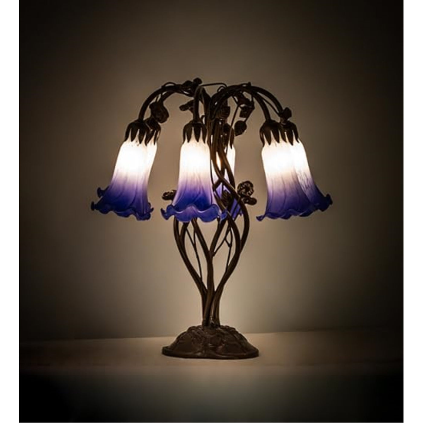 18' High Blue/White Pond Lily 6 Light Table Lamp