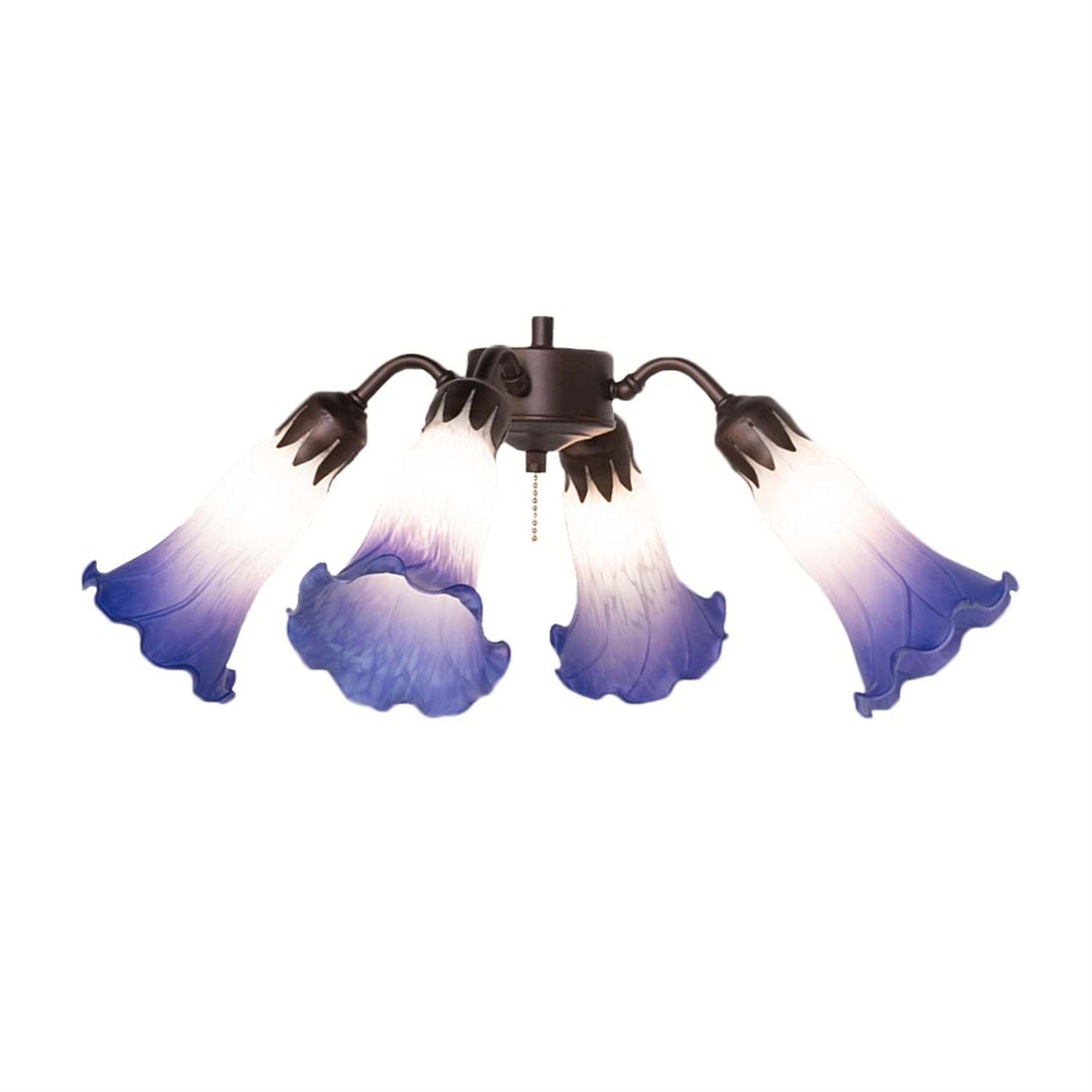 Recreating The Famous Tiffany Design From The Early 1900S. This Fan Light Fixture Features 4 Stunning Shades Created With Blue And White Favrile Style Art Glass. An Elegant Cast Metal Hub Embraces The Lily Shades With A Floral-Styled Fitter Finished By Hand In Mahogany Bronze. The Tiffany Pond Lily 4 Light Fan Light Is Included In Our American-Designed; Handcrafted Favrile Glass Lighting Collection. Ul And Cul Listed For Dry And Damp Locations. Each Shade Is A Unique Work Of Art With Color Variations Based On Natural Ingredients Inherent In The Glass. Please Contact Us If Color Matching Is Critical When Ordering Multiple Items. Fan Not Included.
