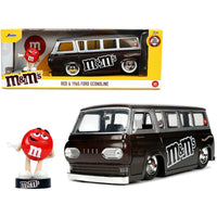 1965 Ford Econoline Bus Brown Metallic And Silver With Red M&M'S Diecast Figurine 'Hollywood Rides' Series 1/24 Diecast Model Car By Jada