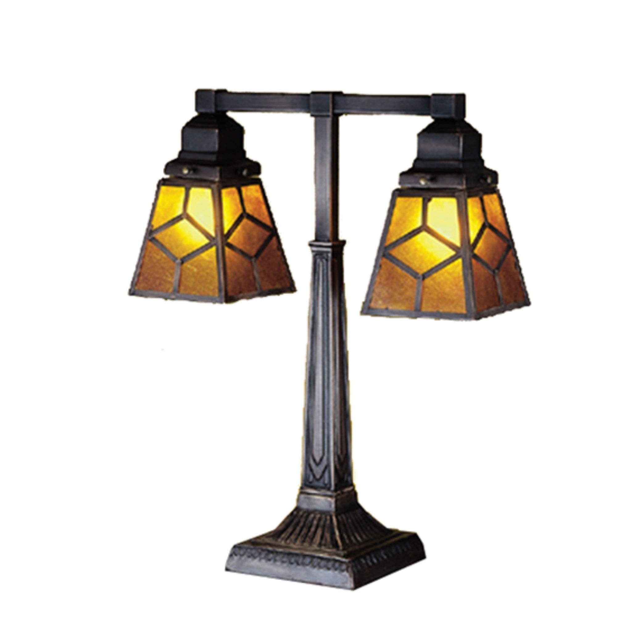 27879 20' High Diamond Craftsman 2 Arm Desk Lamp Manufacturer By Meyda. A Handsome Mission Style Shade With Diamond Pattern; Glows With Amber Mica Panels Created In The Same Method Of Combining Translucent Mica With Shellac Utilized By Dirk Van Erp In 1910. This Mission Style Two Light Desk Lamp; With Mahogany Bronze Hand Finished Metal; Will Warm Your Home With The Radiant Amber Panels. Lens Color : Coral;Sunflower;Amber Glass (Not Mica);Chocolate, Made In China