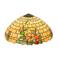 A Beautiful Symbol Of The Circle Of Life; Ambition And Fertility... Hollyhock Flowers Are Often Planted Near The Front Door To Welcome In Good Luck And Prosperity To The Home. This Shade Features Flourishes Of Orange Hollyhocks Accented With Green Leaves On A Beige Gridwork Background. Pair With A Base To Create A Stunning Lamp Such As 253006; 253009 Or 253416. This Shade Is Created Using The Famous Meyda Tiffany Copperfoil Construction Technique. The Duffner & Kimberly Hollyhock Shade Is Featured In Our American Designed; Handmade Duffner & Kimberly Stained Glass Lighting Collection.