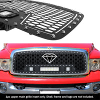 2002-2005 Dodge Ram 1500 /2002-2005 Dodge Ram 2500 /2002-2005 Dodge Ram 3500 Stainless Steel Black Powder Coated Finish Laser Cut Mesh With 12' + 2 X 3' Led Sheet Grille