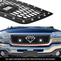 2003-2006 Gmc Sierra 1500 (Not For C3 Model) Logo Covered Stainless Steel Black Powder Coated Finish Laser Cut Mesh With 2 X 3' Led Sheet Grille