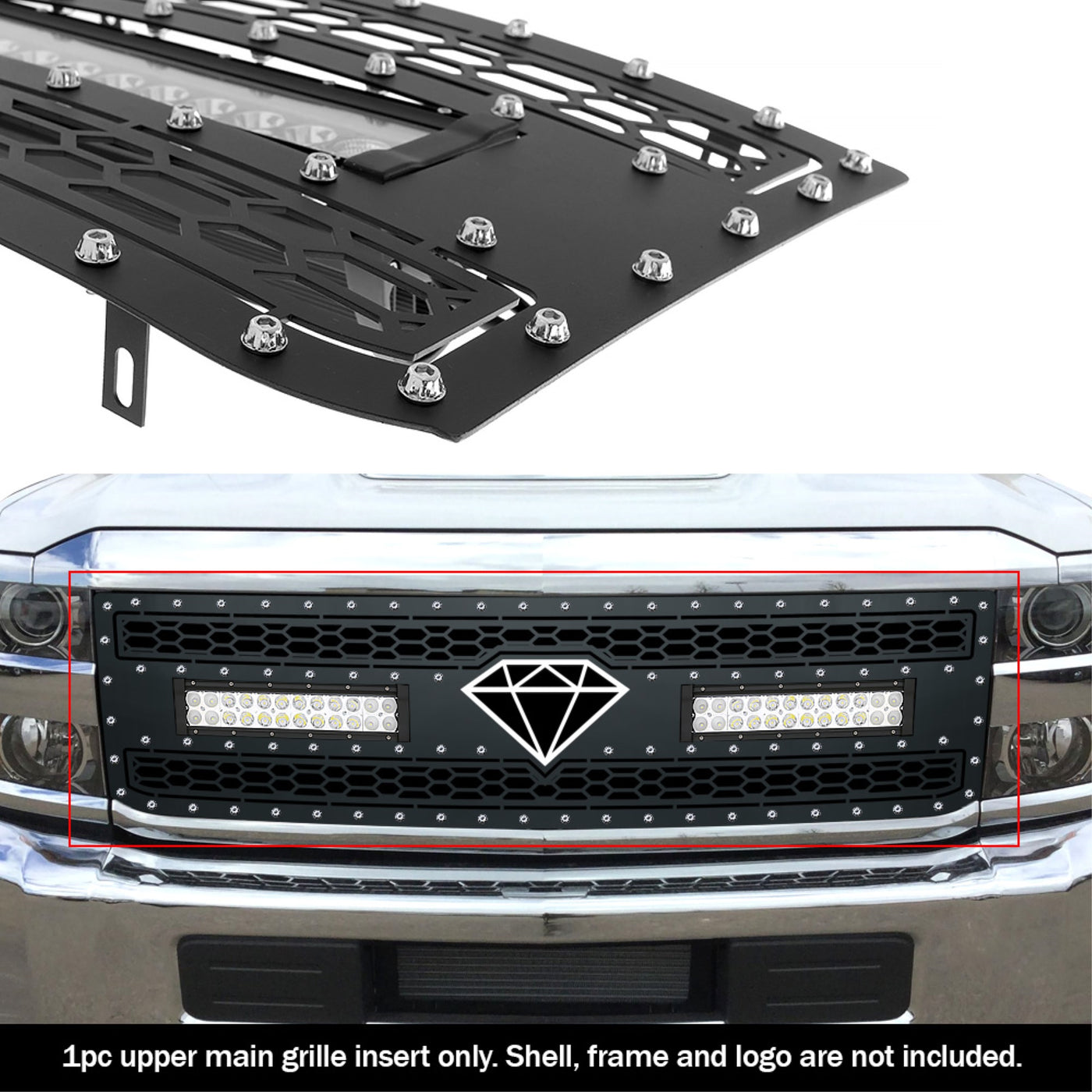 2015-2019 Chevy Silverado 2500 Hd /2015-2019 Chevy Silverado 3500 Hd Stainless Steel Black Powder Coated Finish Laser Cut Mesh With 2 X 12' Led Sheet Grille