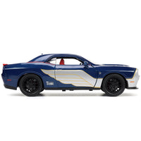 2015 Dodge Challenger Srt Hellcat Dark Blue With Graphics And Red Interior And Thor Diecast Figure 'The Mighty Thor' 'Marvel' Series 1/24 Diecast Model Car By Jada