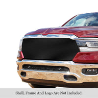 2019-2022 Ram 1500 Laramie/Lone Star/Big Horn/Tradesman (Excl. 19-21 Ram 1500 Classic, Excl. Laramie Limited) Stainless Steel Black Powder Coated Finish 8X6 Horizontal Billet Black Stainless Steel Billet Grille