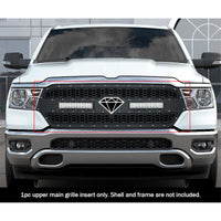 2019-2022 Ram 1500 Laramie/Lone Star/Big Horn/Tradesman (Excl. 19-21 Ram 1500 Classic, Excl. Laramie Limited) Stainless Steel Black Powder Coated Finish Laser Cut Mesh With 2 X 12' Led Sheet Grille