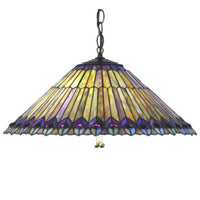26487 20W Tiffany Jeweled Peacock Pendant Manufacturer By Meyda. As Distinctive As Beautiful Peacock Fanning Feathers In The Wild; No Two Shades Will Ever Be The Same As Their Individuality Can Be As Remarkably Unique As Their Personality. This Artistic Creation Utilizes Swirling Opalescent Art Glass Background Combinations Including Beige; Yellow Pinks; Golden Greens; Ivories; Bluish Whites; Turquoise Blues; Olive And Spring Greens. The Eye Of The Plumage Design Reveals Purples; Pastel Blues; Teals; Cobalt And Ivories; Accented With Blue And Purple Colored Jewels. Individual Pieces Of Glass Are Hand Cut And Wrapped Using Meyda Tiffany'S Famous Copperfoil Construction. Each Shade Is A Unique Work Of Art With Color Variations Based On Natural Ingredients Inherent In The Glass. Lens Color : Mauve;Green;Violet, Made In China