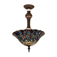 20'W Tiffany Peacock Feather Semi-Flushmount