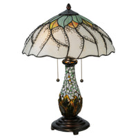 139604 22.5'H Videira Florale Table Lamp Manufacturer By Meyda. Unique Green And Chartreuse With Persimmonleaves Sprout On The Crown Of This Art Glass Shade Featuring Black Branches And Vines On A Bone Beige Background. This Unique Floral Shade Is Enhanced With An Art Glass Mosaic Base In Green; White And Metallic Emerald Tilework; Which Sprouts Out Of A Hand Painted Metal Bud That Sits On A Mahogany Bronze Base. Lens Color : Ruby;Coral;Sunflower;Green;White, Made In China