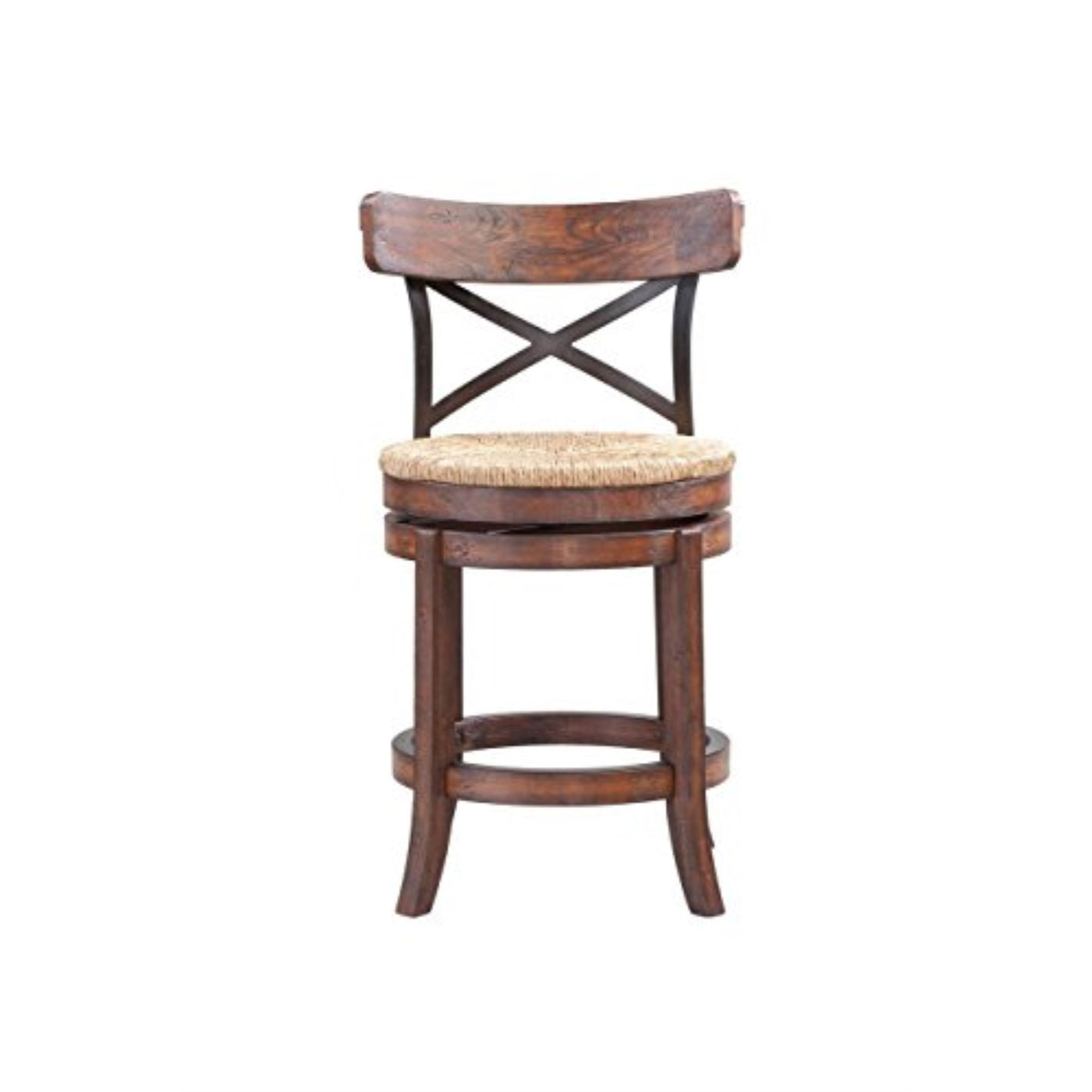76824 24 Myrtle Swivel Counter Stool [Mahogany], The Myrtle Swivel Stool Gives Your Home A Joyful Farmhouse Feeling All Year Round. This Rustic Stool Comes In Your Choice Of Mahogany Or Wheat Wire-Brush Finish Options. It Is Also Available In Bar And Counter Height Options, So You'Re Sure To Find The Right Fit For Your Game Room, Den, Home Bar, Or Kitchen. Crafted With A Solid Rubberwood Frame, The Myrtle Features A Woven Sedge Seat And Metal Cross Back. The Double Seat Apron, Flared Legs, And Circular Stability Stretcher (Which Also Doubles As A Footrest!) All Offer Additional Stability And Durability. A Protective Metal Kick Plate All Along The Stretcher Guards Against Scuffs Or Scratches From Your Feet.