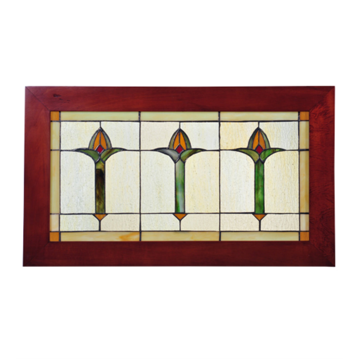 24' Wide X 14' High Arts & Crafts Bud Trio Wood Frame Stained Glass Window
