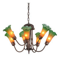 24'W Amber/Green Pond Lily 7 Lt Chandelier