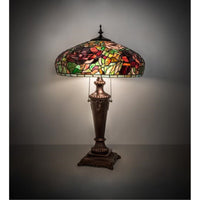The Peony Flower Has Inspired Many Tiffany Shades. This Masterful Re-Creation Is Reminiscent Of The Glory Of The Garden. Full Blooms Of Cinnabar Red And Pink Peonies Are Nestled In A Halo Of Spring Green Leaves. This Art Glass Table Lamp Is Finished In A Warm Mahogany Bronze And Will Bring The Splendor Of The Garden Into Your Home. The Tiffany Peony Table Lamp Is Included In Our American Designed; Handcrafted Tiffany Reproduction Collection. Ul And Cul Listed For Dry Locations. Each Shade Is A Unique Work Of Art With Color Variations Based On Natural Ingredients Inherent In The Glass. Contact Us If Color Matching Is Critical When Ordering Multiple Items.