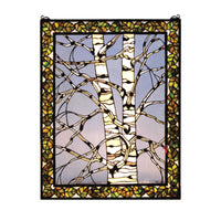 66636 28'W X 36'H Birch Tree In Winter Right Stained Glass Window China. Bring The Charm Of The North Winds Into Your Home With This Meyda Tiffany Stained Glass Window. A Bare Branched Bone Beige; Bark Brown; Winter Gray And White Birch Tree Is Framed With Bronzed Green Leaves Bordered In Bark Brown Against An Icy Clear Seeded Glass Sky. The Window Is Framed In Solid Brass And Has Brass Mounting Bracket And Chains Included. The Art Glass Window Is Made Of Hand Cut Glass Using The Famous Meyda Tiffany Copperfoil Construction Process. Each Piece Is A Unique Work Of Art With Color Variations Based On Natural Ingredients Inherent In The Glass. Contact Us If Color Matching Is Critical When Ordering Multiple Items.