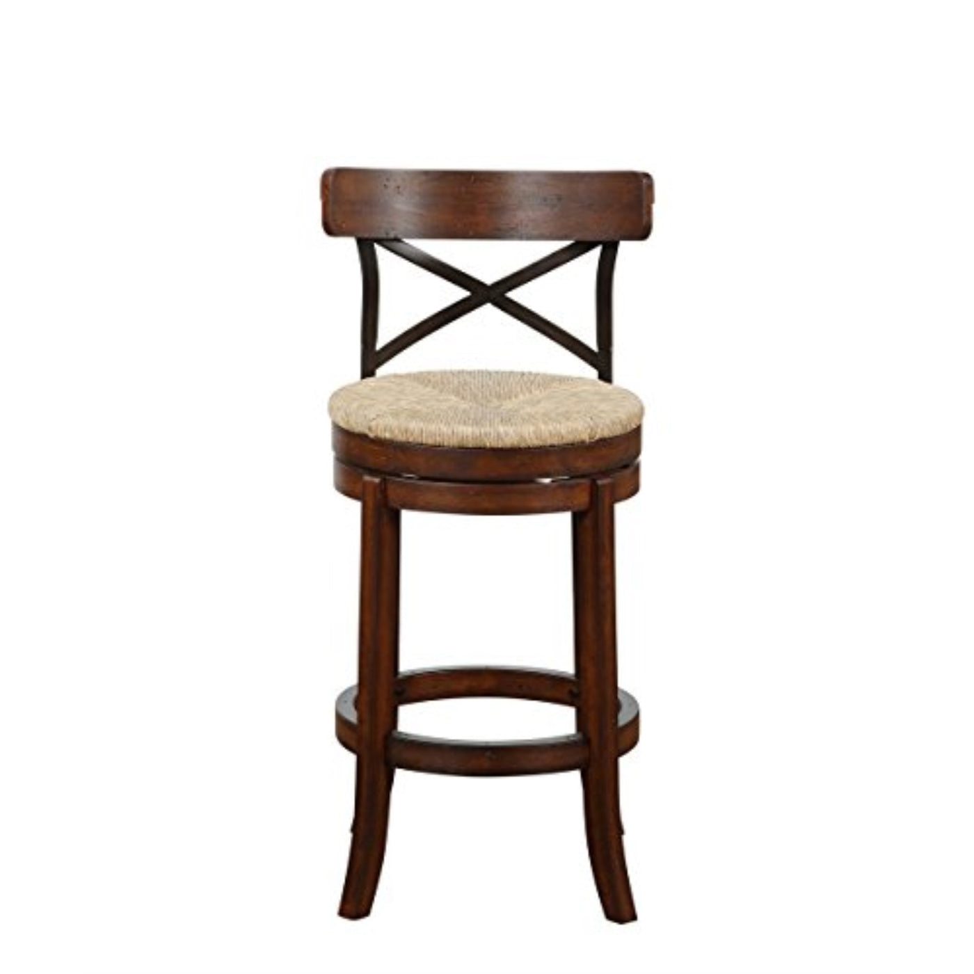 76829 29 Myrtle Swivel Bar Stool [Mahogany], A Little Bit Boho, A Little Bit Farmhouse, The Myrtle Swivel Stool Is 100 Percent Perfect For Your Space. This Rustic Stool Comes In Your Choice Of Mahogany Or Wheat Wire-Brush Finish Options So You'Re Sure To Find The Right Fit For Your Game Room, Den, Home Bar, Or Kitchen. Crafted With A Solid Rubberwood Frame, This Bar Stool Features A Woven Sedge Seat And Metal Cross Back. The Double Seat Apron, Flared Legs, And Circular Stability Stretcher (Which Also Doubles As A Footrest!) All Offer Additional Comfort And Durability. A Protective Metal Kick Plate All Along The Stretcher Guards Against Scuffs Or Scratches From Your Feet. The Myrtle Is Also Available In A Counter Height Option.