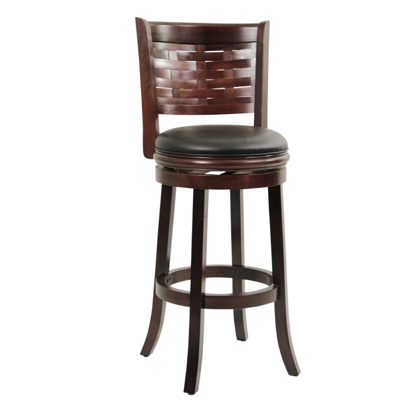 Take Home A Refreshing Update On Traditional-Style Bar Seating With The Sumatra Swivel Stool. The Woven Backrest, Which Is Crafted From Rubberwood, Sits Above Sleek Bonded Leather Upholstery. High-Density Foam Cushioning Provides Utmost Comfort, As Does The Full-Ring Footrest. A Full 360-Degree Swivel Offers You A Full Range Of Motion, While The Steel Ball-Bearing Swivel Plate Provides Increased Durability. Performance Tested By Leasing Testing Facilities For Your Peace Of Mind. The Sumatra'S Effortless Style Looks At Home In Any Kitchen, Basement, Game Room, Or Home Bar. Customize It Even Further By Choosing From The Available Color And Height Options.
