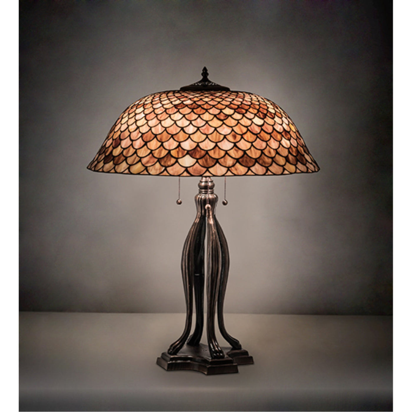 230385 30' High Fishscale Table Lamp Manufacturer By Meyda. An Elegant Reproduction Of A Louis Comfort Tiffany Studio Classic. The Famous Fishscale Table Lamp Features A Variegated Tortoiseshell Of Mauve; Amber And Beige Colored Art Glass; Evoking A Unique Dimensional And Textured Look In A Rainbow Of Brilliant Hues. This Exquisite Art Glass Shade Is Created Using The Famous Meyda Tiffany Copperfoil Construction Process. The Shade Is Complemented With A Handsome Base Featured In A Mahogany Bronze Finish. Ul And Cul Listed For Dry Locations. Each Shade Is A Unique Work Of Art With Color Variations Based On Natural Ingredients Inherent In The Glass. Contact Us If Color Matching Is Critical When Ordering Multiple Items. Lens Color : Ruby;Coral;Chocolate, Made In China