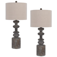 With A Retro Yet Deeply Elegant Design, This Set Of Two Accent Table Lamps Adds A Combination Of Modern And Traditional Style To Your Living Space. It Has A Classic Resin Turned Base In A Faux Stone Finish, A Hardback Linen Shade, And An E26 Bulb Base With 150 Watt Power Capacity For Warm And Cozy Ambient Light At Any Desired Intensity With Its Three Way Dimmer Switch.