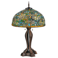 139419 36'H Tiffany Laburnum Trellis Table Lamp Manufacturer By Meyda. Generous Bouquets Of Cascading Floral Blossoms In Sunrise Yellow; Willow White And Taupe With Spring Green Leaves Growing Over An Amber Colored Garden Trellis; Make The Laburnum A Popular Style. This Beautiful Laburnum Trellis Art Glass Shade Is Paired With A Mahogany Bronze Finished Claw Foot Base. The Shade Was Created With Authentic Stained Glass Using Meyda Tiffany'S Famous Copperfoil Construction Process. Lens Color : Coral;Sunflower;Green;Blue;Beige, Made In China