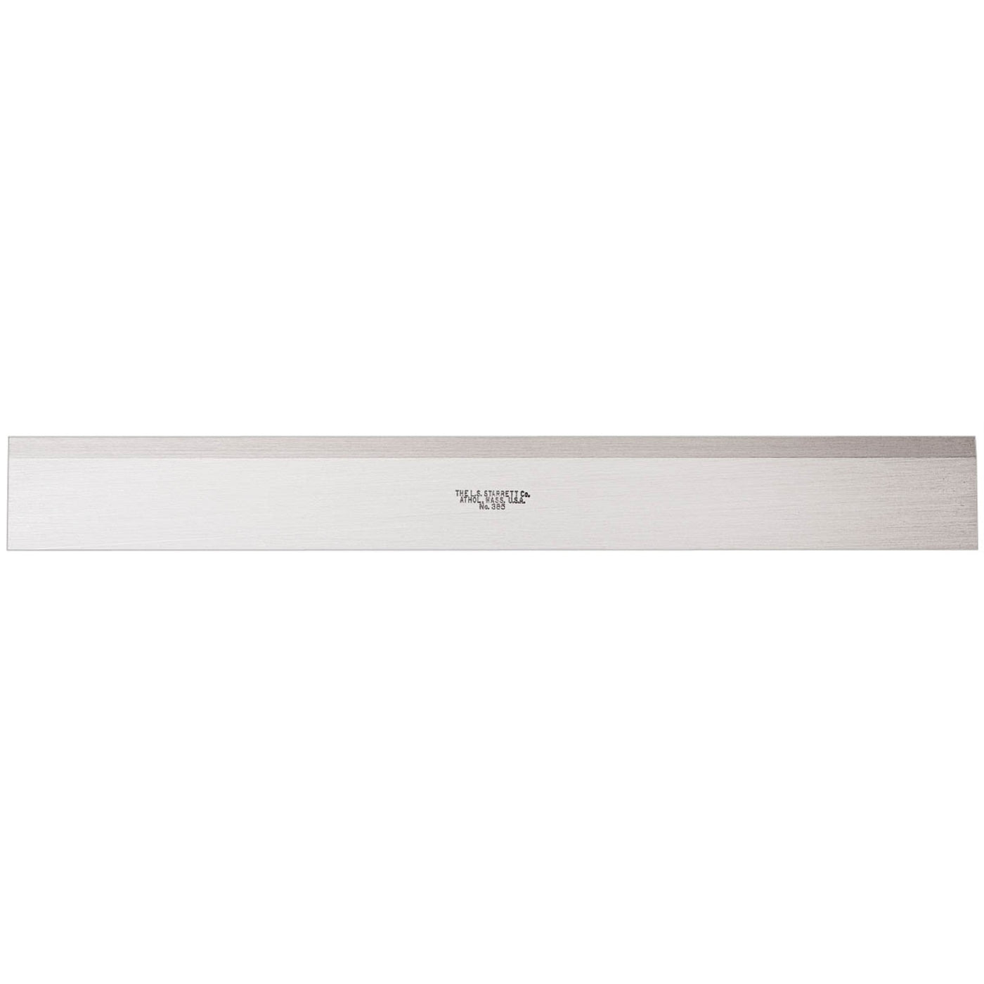 The Starrett 385 Series Steel Straight Edit With Bevel Edge Is Precision Ground And Nicely Finished To Rigid Starrett Standards. It Is Unexcelled For Drawing Or Scribing Straight Lines And Checking Surfaces For Straightness. Its Thickness And Design Permit It To Retain Shape And Accuracy, But Still Be Portable And Easy To Handle. The 380 And 385 Series In Sizes 900Mm (36) And Longer Is Marked With Arrows At Two Suspension Points. If The Straight Edges Are Brought To The Work And Used On Edge, They Should Be Suspended At These Two Points To Minimize Deflection. Most Jobs Involve The Use Of Straight Edges In The Flat Position And It Is In This Position That We Check Most Stringently. 300Mm (12).