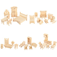 3D Wooden Dollhouse Furniture Puzzles Diy Miniature Furniture Models Set