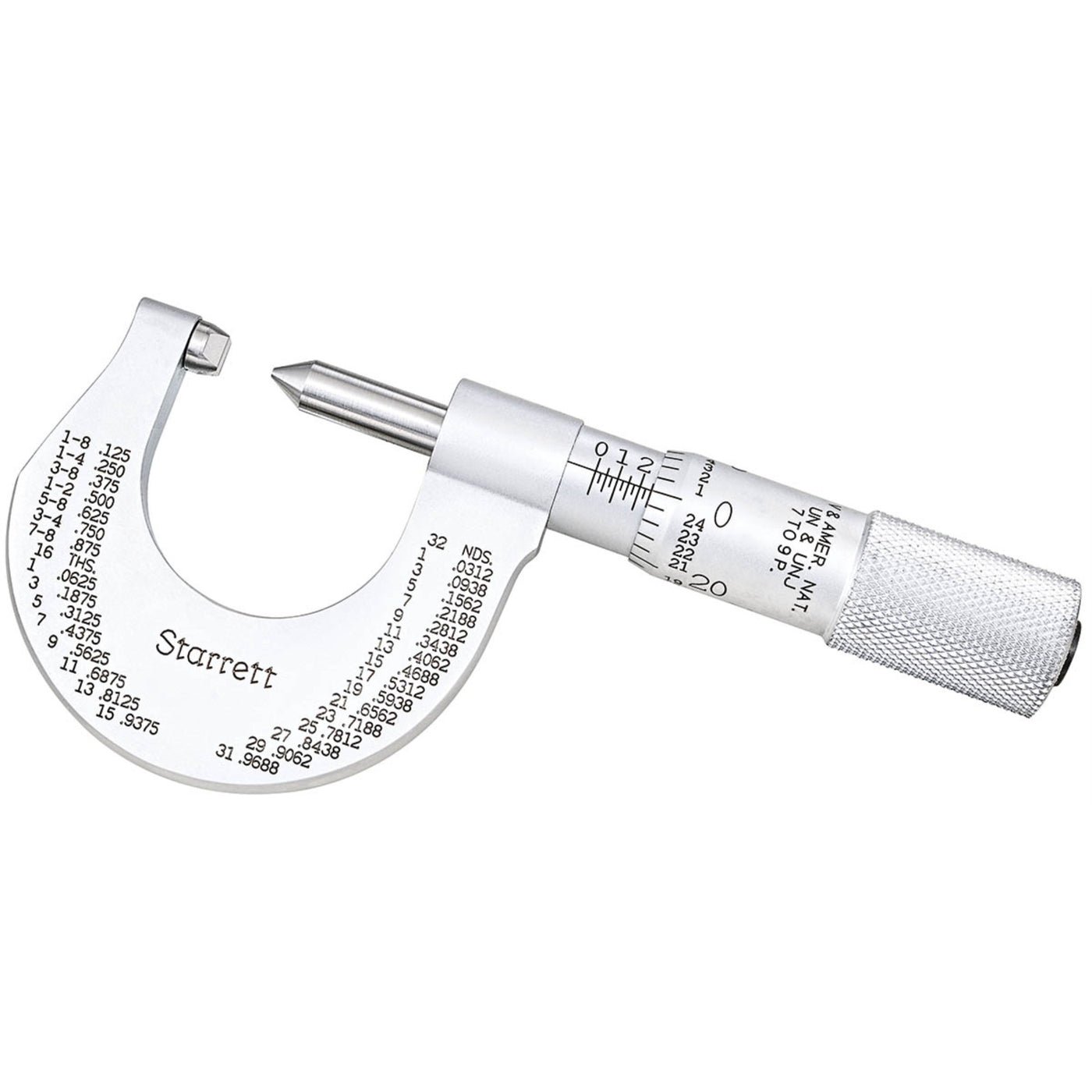 The Starrett 575 Micrometers Have A Pointed Spindle And A Double V-Anvil, Both Shaped To Contact The Screw Thread. The Micrometer Reading Therefore Gives The Pitch Diameter. 0-1 Range, .001 Grad, 7-9 Tpi.