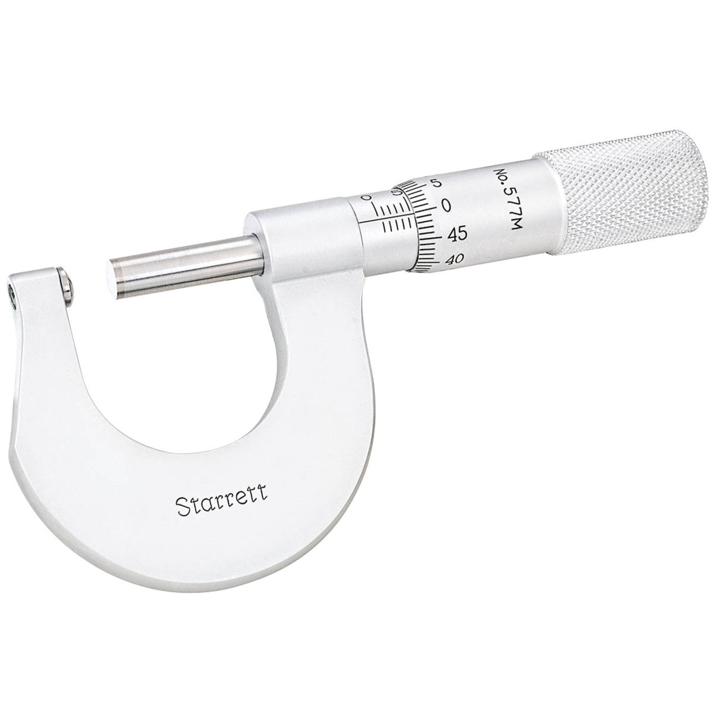 The Starrett 577 Micrometers Are Extremely Useful For Measuring The Wall Thickness Of Parts Such As Solid And Split Bearings, Tubing, Sleeves, Collars, Rings, Various Cylinders, And Also Measuring From The Inside Of A Hole To An Edge 0-25Mm Range, 0.01Mm Grad, Plain, Carbide Anvil & Spindle.