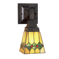 48189 5'W Martini Mission Wall Sconce Manufacturer By Meyda. In Keeping With The Mission Style Of Translating Objects Into Geometric Forms; The Meyda Tiffany Design Team Has Taken The Martini; Complete With Olive; And Transformed It Into This Stylish Stained Glass Shade. Olive Green Diamonds With Pimento Red Accents Garnish The Honey Amber Wall Sconce Shade That Is Suspended From Linear Mission Styled Hardware In Mahogany Bronze. Lens Color : Ruby;Coral;Sunflower;Amber Glass (Not Mica);Green;Chocolate;Beige, Made In China