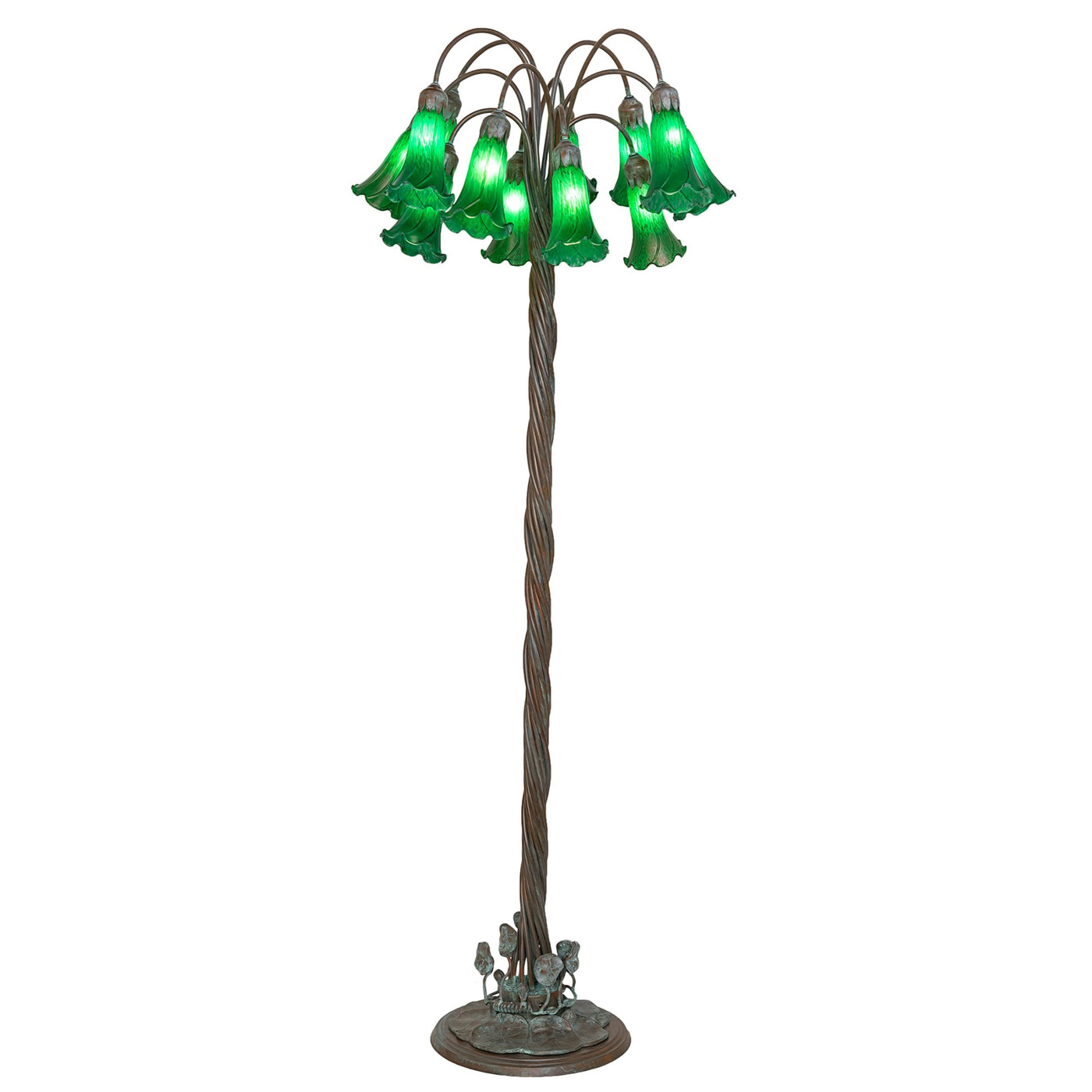 Inspired By The Popular Tiffany Design From The Early 1900S... This Floor Lamp Offers An Attractive; Delicate Design Featuring 12 Stunning Shades Created With Green Favrile-Style Mouth-Blown Art Glass. The Pond Lily Shades Are Embraced By An Elegant Cast Bronze Base With Floral And Vine Accents Featuring A Rich Mahogany Patina. The Pond Lily Floor Lamp Is Featured In Our American-Designed; Handcrafted Favrile Glass Lighting Collection. Ul And Cul Listed For Dry Locations. Each Shade Is A Unique Work Of Art With Color Variations Based On Natural Ingredients Inherent In The Glass. Contact Us If Color Matching Is Critical When Ordering Multiple Items.