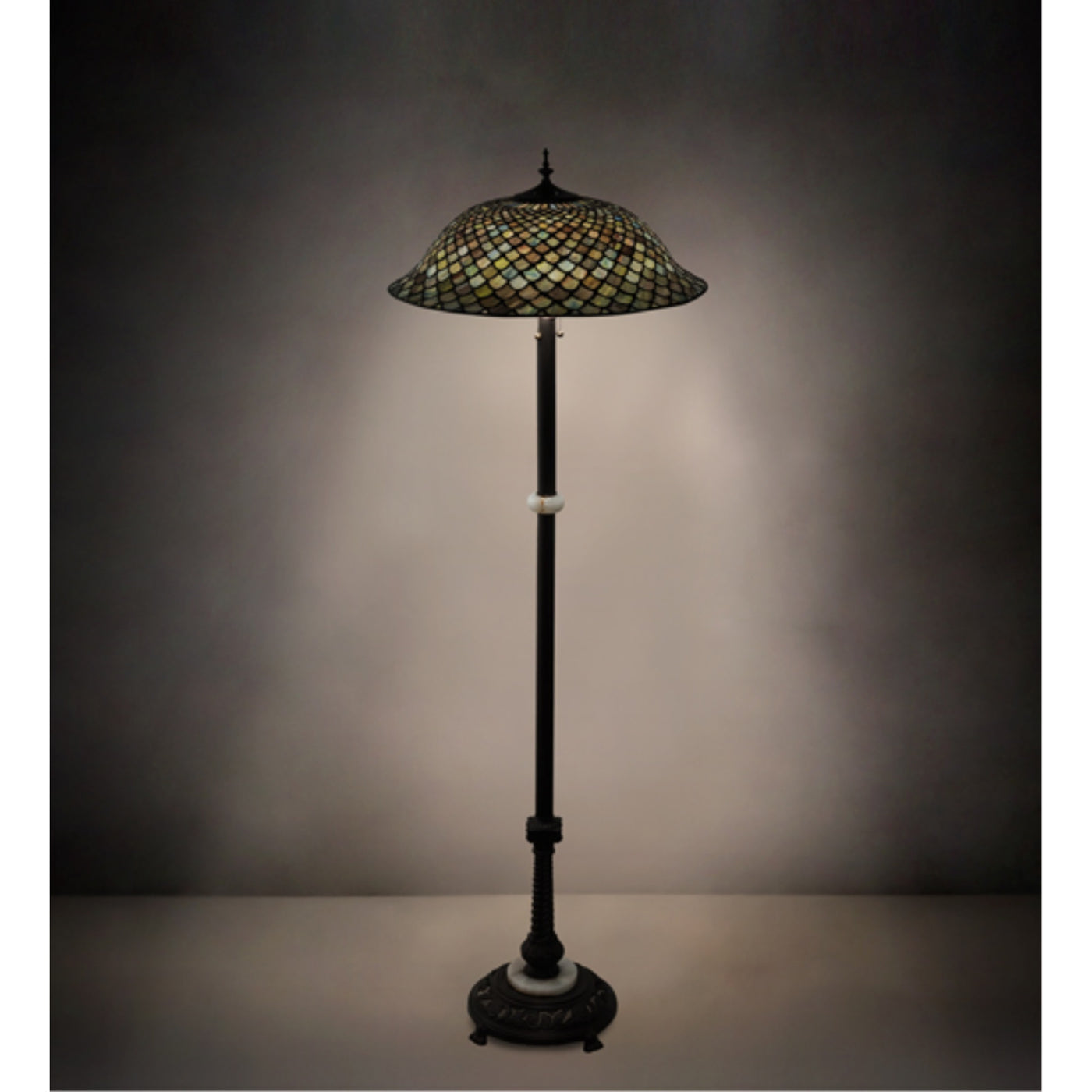 229070 62' High Tiffany Fishscale Floor Lamp Manufacturer By Meyda. A Louis Comfort Tiffany Studio Classic Fishscale Pattern Reproduced In Variegated Glass Of Honey Dripped Emerald; Sapphire; Citrine; And Garnet. This Lovely Tiffany Fishscale Shade Is Created Using The Famous Meyda Tiffany Copperfoil Construction And Enhanced With A Mahogany Bronze Finished Lamp Base. A Versatile Lamp To Complement Any Decor. Ul And Cul Listed For Dry Locations. Each Shade Is A Unique Work Of Art With Color Variations Based On Natural Ingredients Inherent In The Glass. Contact Us If Color Matching Is Critical When Ordering Multiple Items. Lens Color : Amber Glass (Not Mica);Green;Beige, Made In China