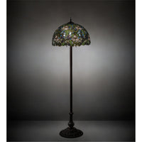 24496 62' High Trillium & Violet Floor Lamp Manufacturer By Meyda. Nature Abounds In This Designer-Styled Stained Glass Shade. Clusters Of Violets With Woodland Green Leaves Offer Protection On The Forest Floor To The Delicate Ivory Trillium; While Amber Vines Twist And Turn Through A Background Of Sky Blue And Clear Seeded Glass. Clear Jewels Glisten Throughout The Shade Like The First Dew Drops Of The Day. Each Piece Of Glass In The Shade Is Hand Cut And Wrapped Using The Famous Meyda Tiffany Copperfoil Construction. The Floor Lamp Base Is Hand Finished In Mahogany Bronze. Ul And Cul Listed For Dry Locations. Lens Color : Green, Made In China