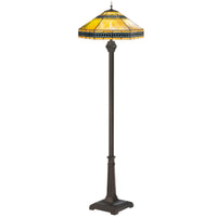26567 64'H Cambridge Floor Lamp Manufacturer By Meyda. Inspired By Tiffany'S Famous Harvard Design; The Cambridge Mission Is Handsome And Versatile. The Shade Is Bordered In A Crescent Filigree Over Sky Blue With Amber Rippled Glass Accents; And Like A Fire Opal; Vibrates With Swirled Jewel Tones Of Jade; Amber And Touches Of Ruby And Cobalt That Are Unique In Every Panel; And Every Light Source. The Floor Lamp Is Hand Finished In Mahogany Bronze. Lens Color : Pink;Coral;Amber Glass (Not Mica);Blue, Made In China