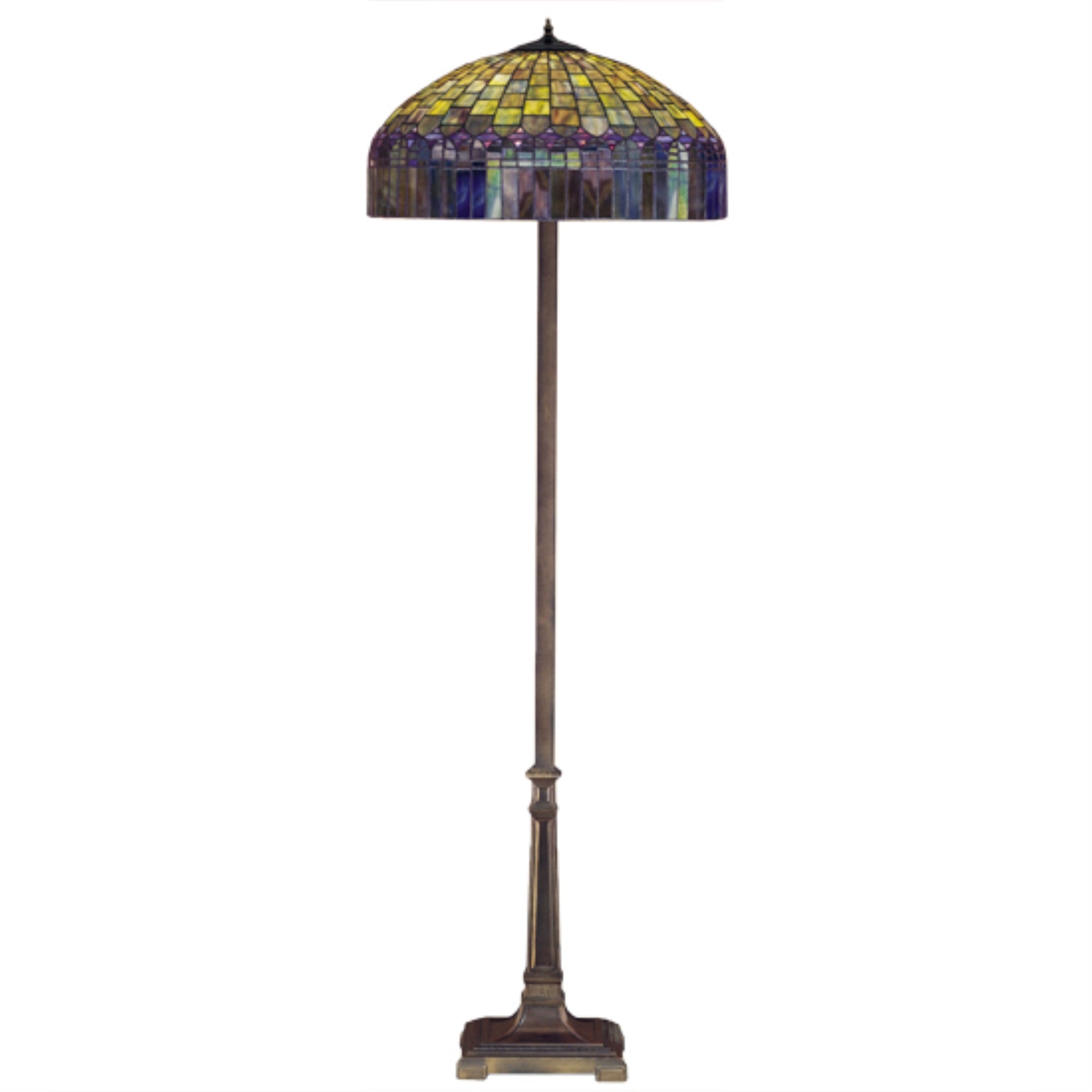 31120 65'H Tiffany Candice Floor Lamp Manufacturer By Meyda. In The Early 20Th Century; Tiffany Studios Used It'S Artful Mastery To Develop The Look Of A Woven Fabric With A Fringed Skirt From Art Glass. Meyda Tiffany Has Recreated This Shade With Amber Plum Glass Fringe Suspended From A Domed Brickwork Of Emerald; Cobalt And Ruby Tinted Honey Glass. Hand Cut And Copper Foiled Glass Pieces Make Up This Stately Floor Lamp With Mahogany Bronze Finish. Lens Color : Amber Glass (Not Mica);Green;Violet, Made In China