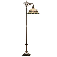 65839 70'H Tiffany Roman Bridge Arm Floor Lamp Manufacturer By Meyda. Emerald-Colored Jewels And Multi Colored Granite Glass; Accent The Handsome Amber Beige Art Glass Reproduction Of A Famous Louis Comforttiffany Design. This Tiffany Roman Shade Is Inspired By Italian Art And Architecture And Is Handcrafted Of Authentic Stained Glass By Meyda Tiffany Artisans Using A Copperfoil Construction Method. The Bridge Arm Floor Lamp Base Is Finished In A Hand Applied Mahogany Bronze. Lens Color : Mauve;Green;Chocolate;Beige, Made In China