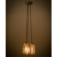 165847 7'W Mason Jar 3 Lt Pendant Manufacturer By Meyda. Designed To Add Quaint Charm And Fun To Any Room; This Pendant Features Three Clear Glass Mason Jars With Sparkle Silver Finished Hardware And Silver Cloth Covered Cords That Will Complement A Broad Range Of Interior Decor Schemes. Made In The Usa; The Fixture Is Handcrafted By Highly Skilled Meyda Artisans In The Yorkville; New York Manufacturing Facilities. Custom Designs; Colors; Sizes And Dimmable Energy Efficient Lamping Options Are Available. The Pendant Is Ul And Cul Listed For Damp And Dry Locations. Lens Color : Black Glass (430 Is Metal Finish);Silver, Made In Usa