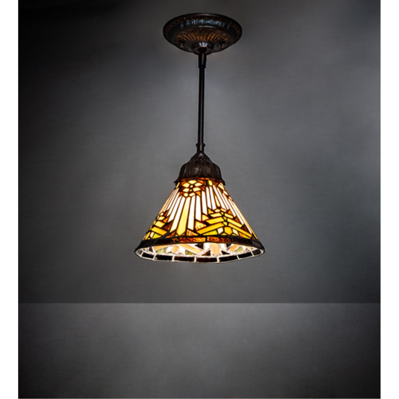244862 8' Wide Nuevo Mission Mini Pendant China. Stylized Wisteria Flower Clusters Of China Pink; Grape And Amethyst Blue With Jade Green Leaves Drape Over This Ivory Toned Graceful Copper Foil Pendant Shades. The Classic Styling Of This Tiffany Inspired Stained Glass Mini Pendant And Soft Pastel Colors Will Add Charm To Any Room.