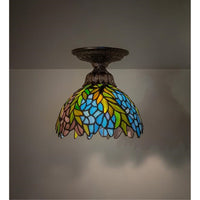 The Honey Locust Is A Popular Floral Design Created By Louis Comfort Tiffany Over A Century Ago. The Ceiling Fixture Features A Decorative Dome-Shaped Stained Glass Shade With Petal-Shaped Edges And Depicts Clusters Of Plum And Periwinkle Flowers Amid Spring Green Leaves Cascading Downward. This Fixture Is Designed With Elegant Cast Metal Hardware Finished In Mahogany Bronze. It Is Ideal For Illuminating Hallways And Dining Areas In Homes; Restaurants; And Inns; From Scottsdale; Arizona; To Billings; Montana; And Seattle; Washington. The Tiffany Honey Locust Flushmount Is Included In Our American-Designed; Handcrafted Tiffany Stained Glass Collection. Ul And Cul Listed For Dry And Damp Locations. Each Shade Is A Unique Work Of Art With Color Variations Based On Natural Ingredients Inherent In The Glass.