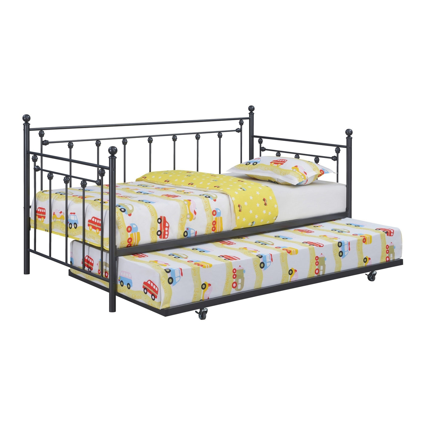 Maximize The Comfort Of Your Guest Or Kids Bedroom With This Beautiful And Effortlessly Functional Farmhouse Style Daybed. The Spindle Design With Finial Ornamentation In A Sleek Jet Black Finish Enhances Its Elegance While The Underbed Caster Trundle Brings Extra Sleeping Space For Guests Effortlessly. Check Out Our Olly Collection For Matching Items.