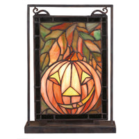 65267 9.5'W X 10.5'H Jack O'Lantern Lighted Mini Tabletop Window Manufacturer By Meyda. Rust And Moss Autumn Leaves Surround A Pumpkin Orange Jack O' Lantern; A Hauntingly Beautiful Work Of Art. Handcrafted Utilizing The Copperfoil Construction Process; This Mini Window Is Encased In A Solid Brass Frame And Hangs Perfectly In It'S Own Brass Tabletop Display. Lens Color : Coral;Sunflower;Green, Made In China