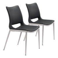 This Sleek Armless Dining Chair Lets You Sit Back And Relax In Comfort. Its Perfectly Pitched Back Cradles You, While The Sturdy Steel Frame Supports Your Every Move. The Black Faux Leather Seat Is Beautifully Stitched Adding A Designer Detail To A Simple Profile. Protective Plastic Feet Will Keep Your Floors From Scratching. Gorgeous Around Your Table, Or Pulled Up To The Desk In Your Home Office.